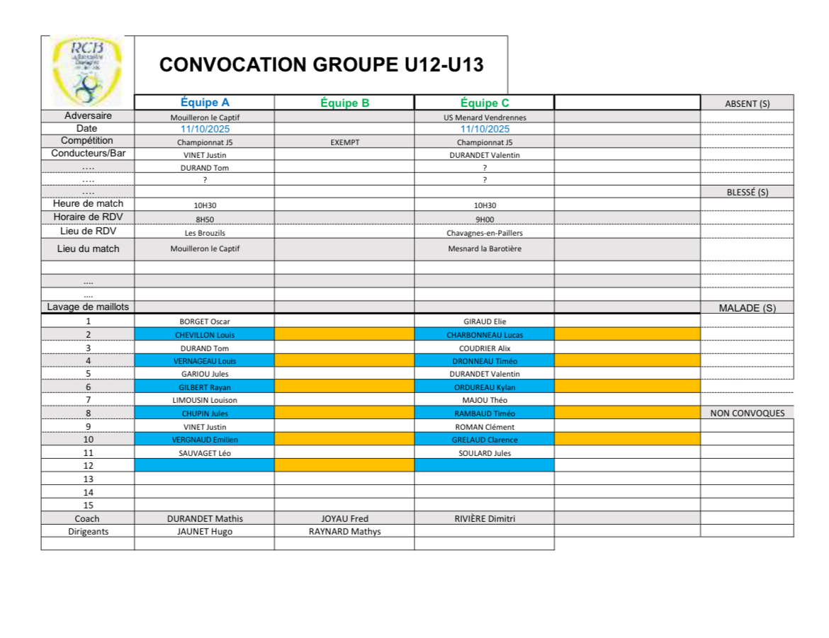 Voici les convocations U13
