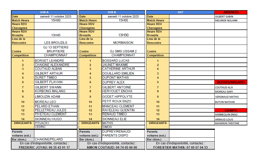 Voici les convocations U15